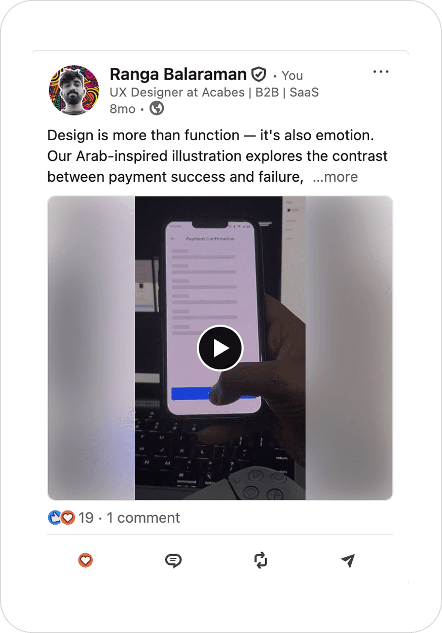 I’m Ranga, a UI/UX and Motion Designer with 3+ years of experience crafting intuitive digital products. I specialize in transforming complex ideas into seamless, strategic design thinking and engaging motion.